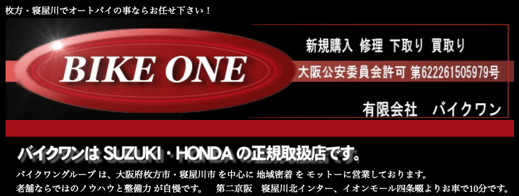 同店では持ち込み査定を行なっていますが同じ名前のバイクワンでも全く関係のないスズキ・ホンダ販売店なので間違いのないように知っておいてください。