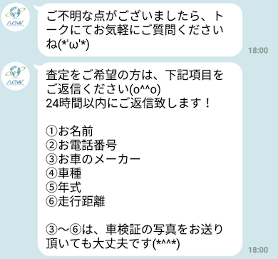 車両情報を伝えるのが面倒であれば、車検証の写真を送るだけでOKです。